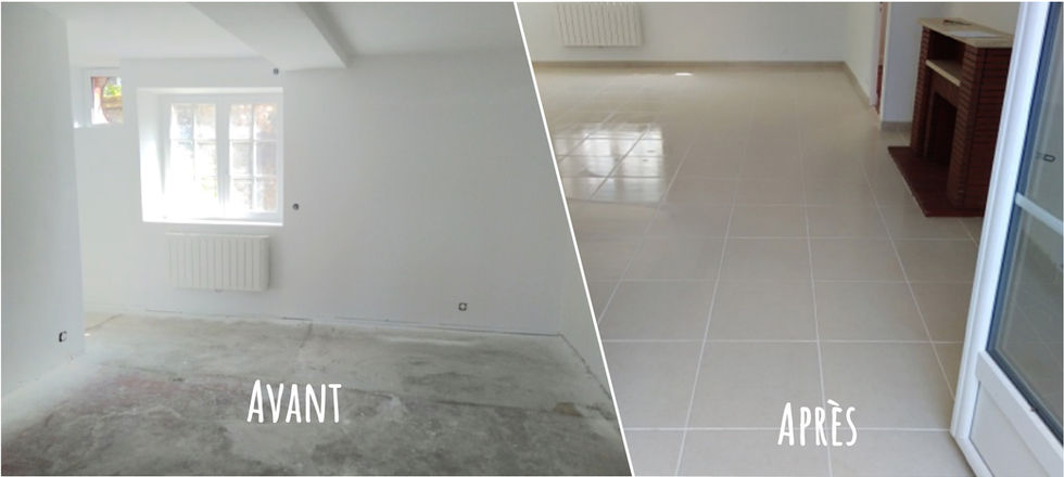 Carrelage, parquet, plaque de plâtre, cloison, porte-fenêtre, volet